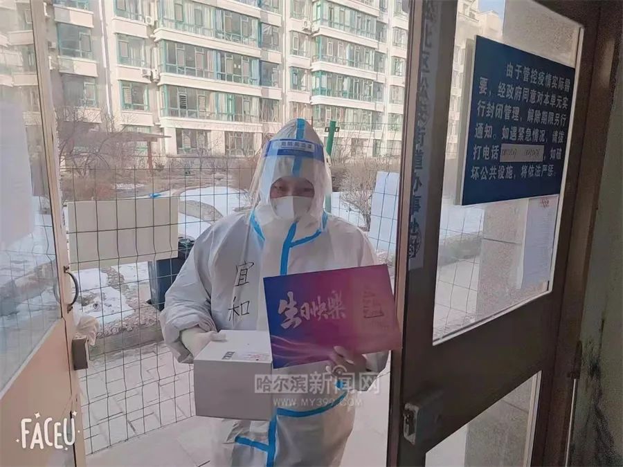 破防了!大喇叭不光喊防疫,还能送祝福……近日,在哈尔滨松北区宜和园小区,管控单元里的王阿姨度过了一个特殊的生日 …… ![]() 因疫情防控需要,小区开始对相关单元进行管控。 采集信息过程中,由于要对有老人的住户格外留心,社区人员也就记住了 6 楼王阿姨的身份信息。 3 月 19 日这一天,王阿姨的女儿给社区来电话,说老人今天过生日,但当天按正常安排是不配送生活物资的。社区武秀君主任就对王阿姨的女儿说:" 我们给老人买个蛋糕吧!" 王阿姨的女儿非常感动,说自己已经给老人买好了蛋糕。于是社区工作人员就张罗起来,给老人制作了一张贺卡。 为了哄王阿姨开心,穿着防护服的社区工作人员还想到一个好主意—— ![]() 大家在楼下一起用防疫宣传用的便携大喇叭 " 喊话 ",给王阿姨 " 隔空 " 送上祝福。然后由 " 大白 " 将蛋糕和卡片送到王阿姨手中,并记录下 " 寿星 " 王阿姨开心的样子。 ![]() ![]() ![]() 这可能是王阿姨过的最特殊的一个生日吧! 生日快乐! 谢谢温暖的 " 大白 " 们! 又一次被 " 大白 " 破防了 …… ![]() |